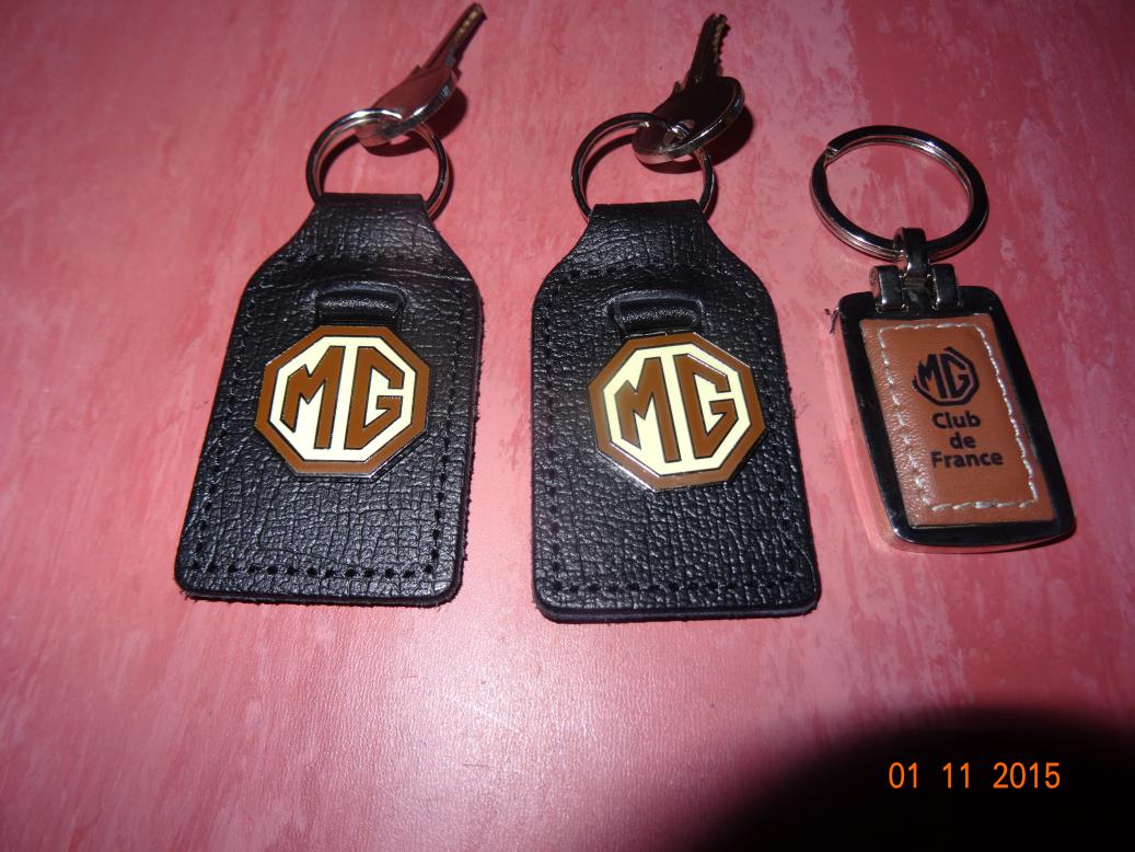 I bought myself a present, two key fobs with the correct colour badges. The other fob is from the MG club de France. Nice isn't it?