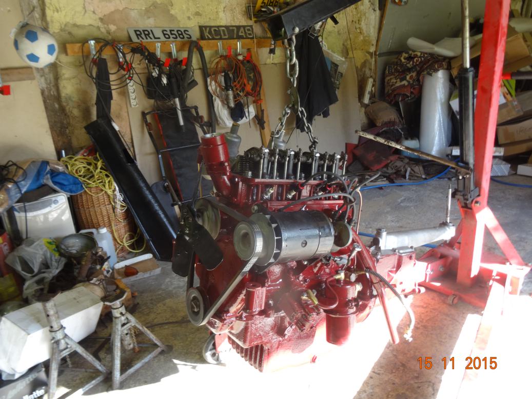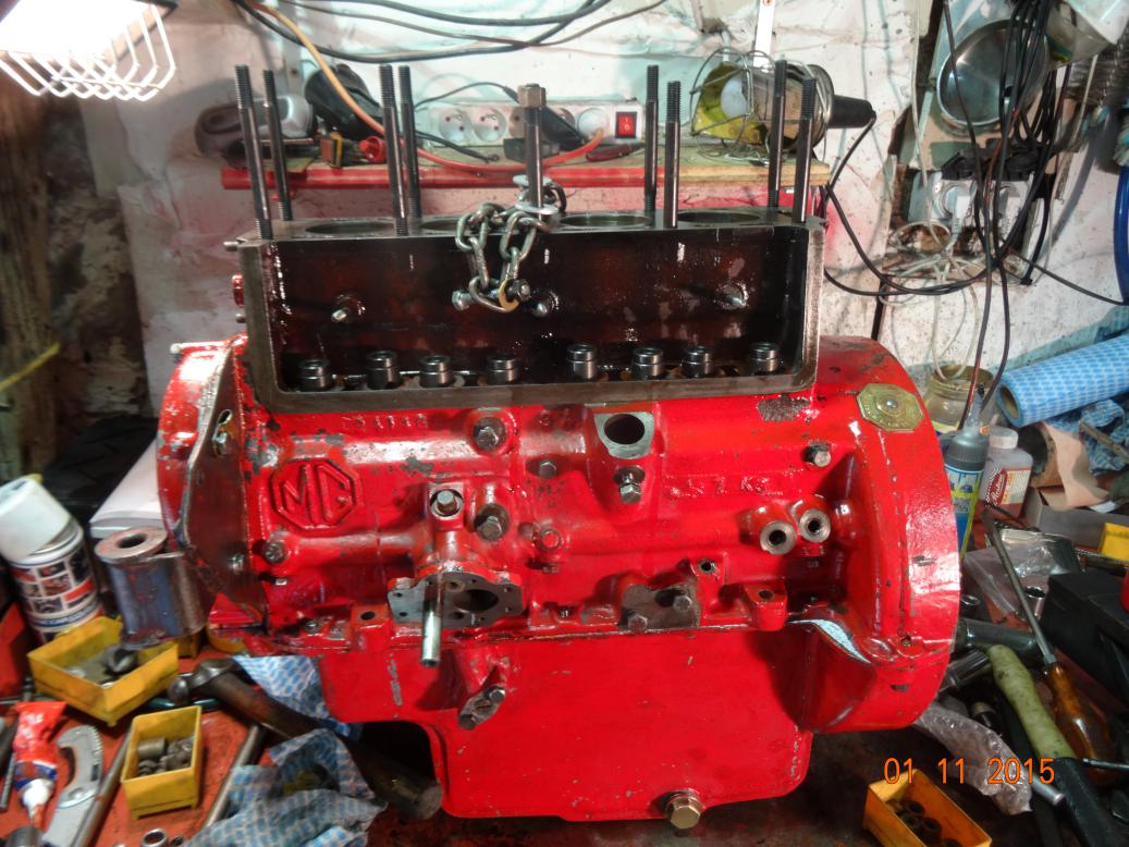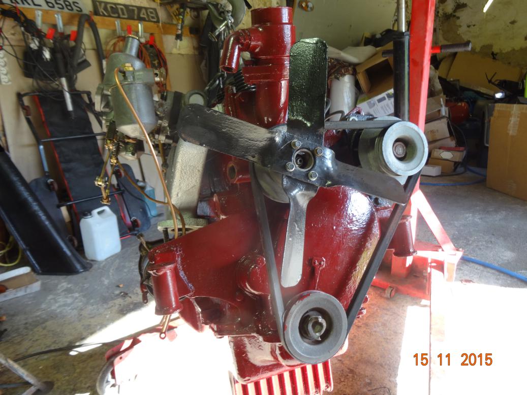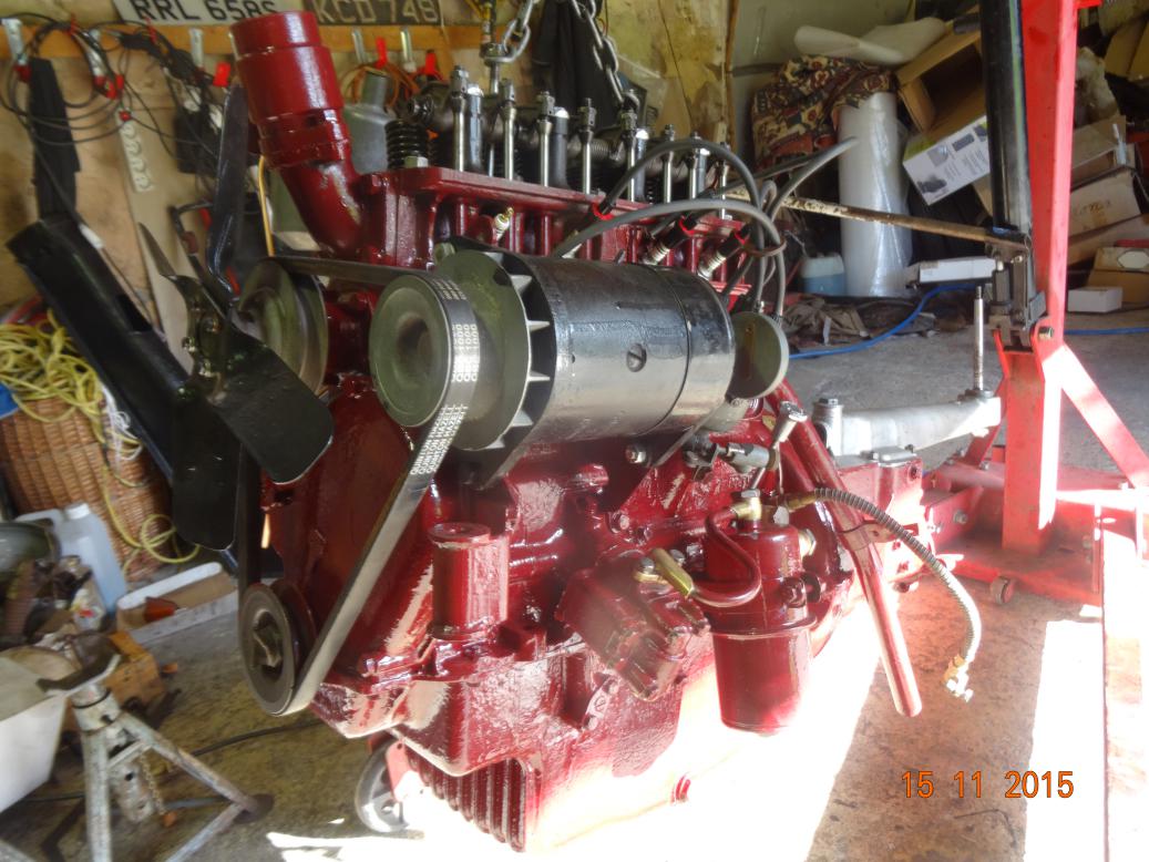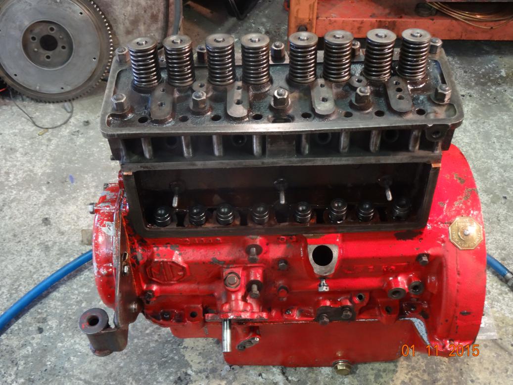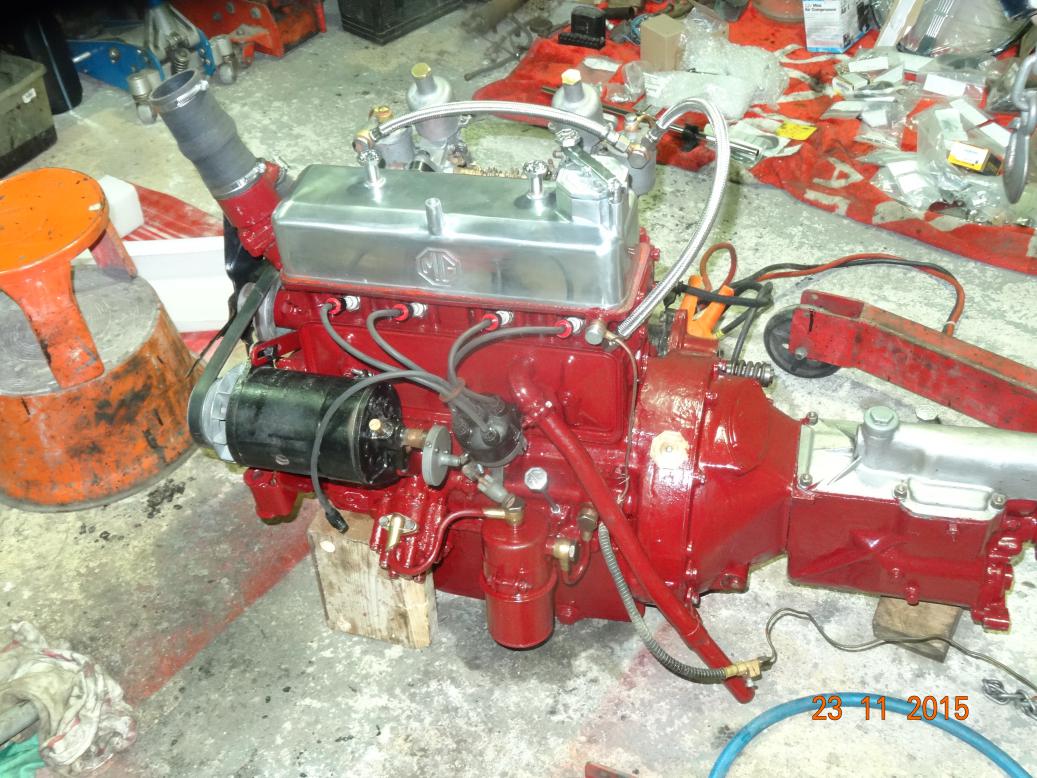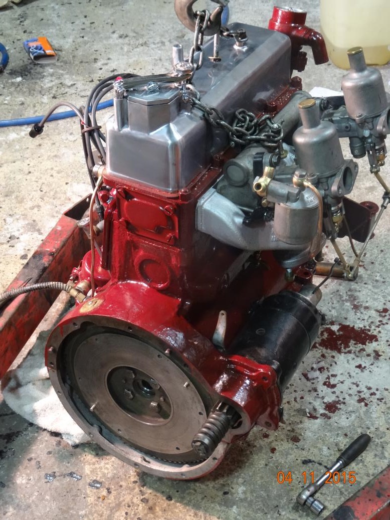 So, tonight the engine is almost complete and painted. I'll touch it up tomorrow, painting the bits I missed and then clean the overpainting off the bits that shouldn't have paint (rocker cover and brass unions). I have to clean the oil pipe union bolts then fit all the oil pipes. Then I'll fit the manifolds, carbs, starter and dynamo.