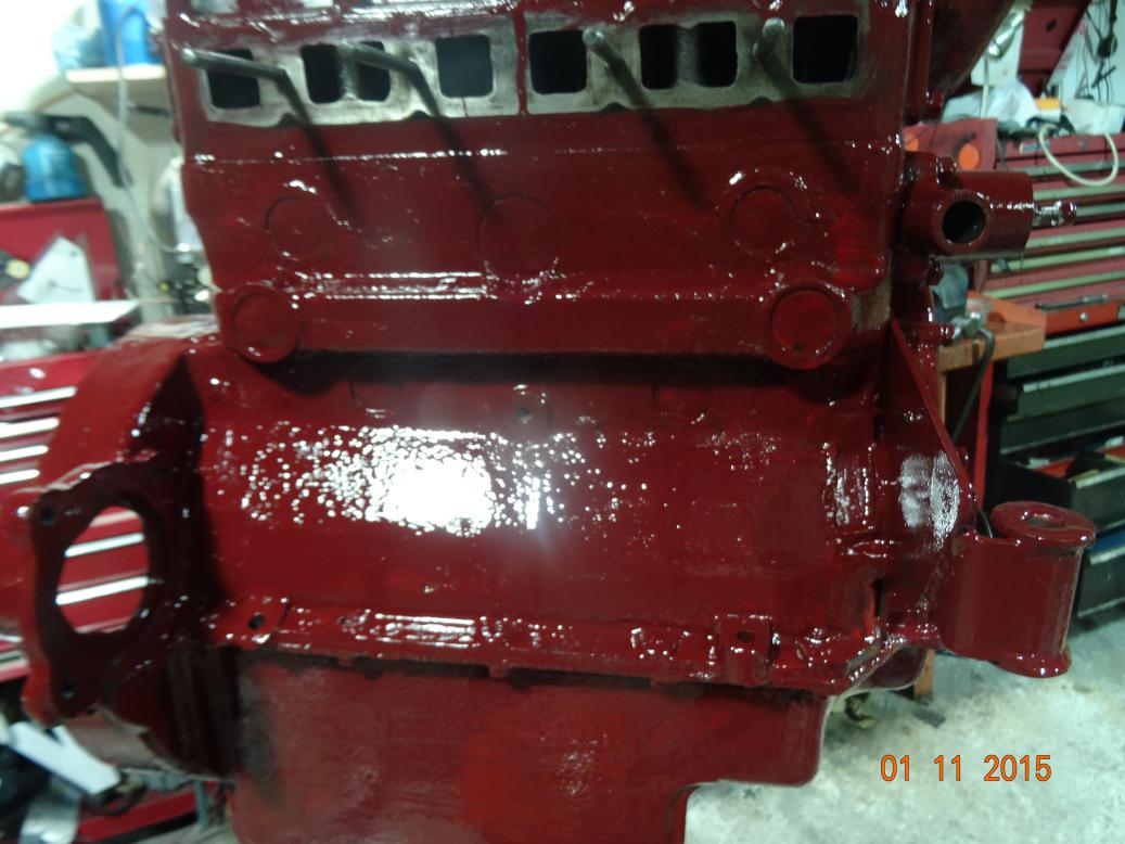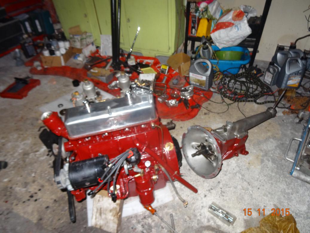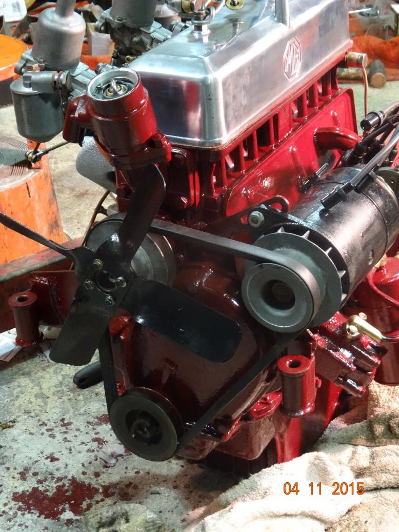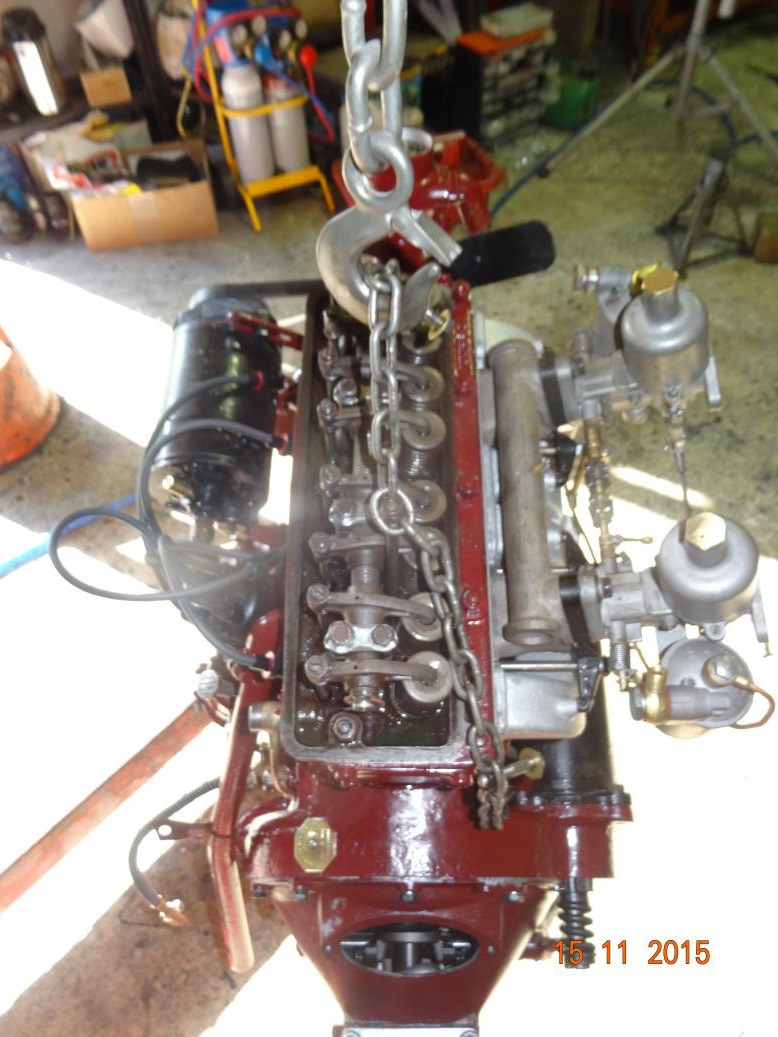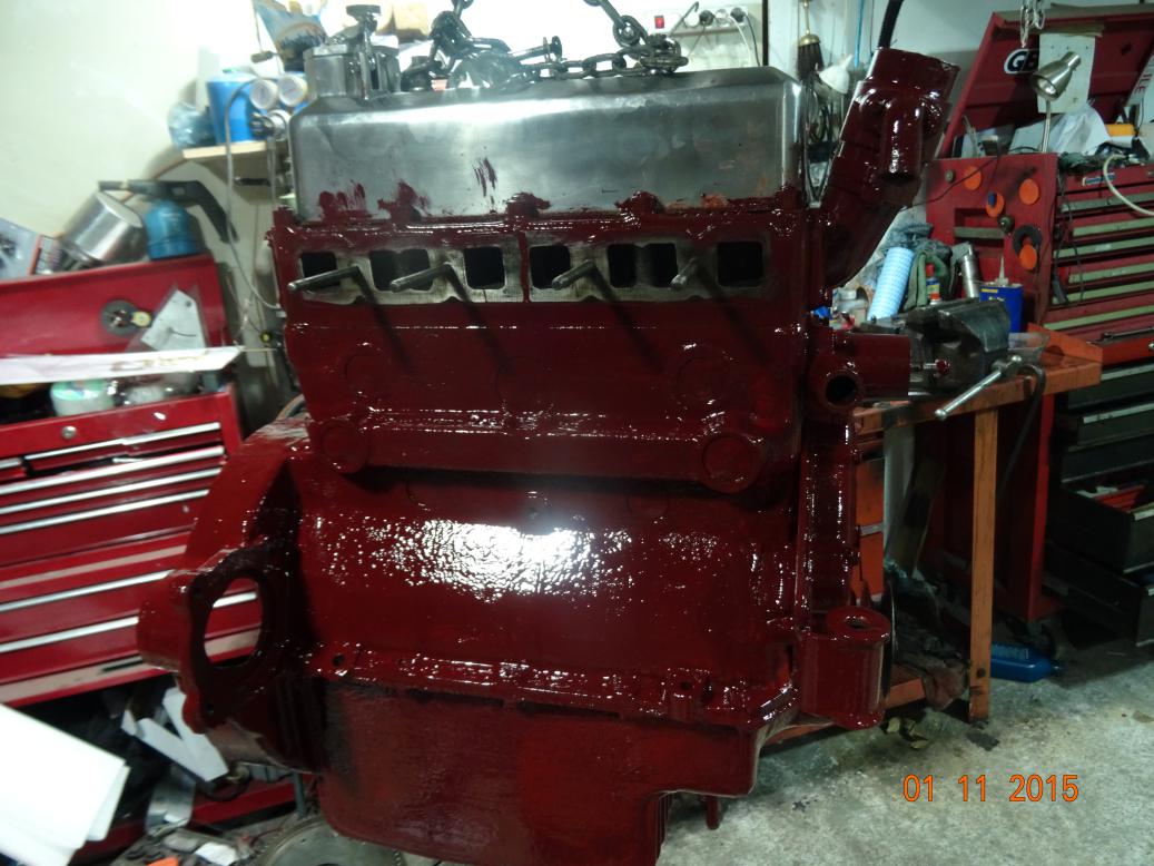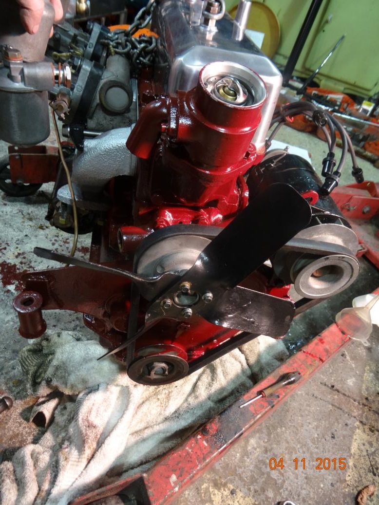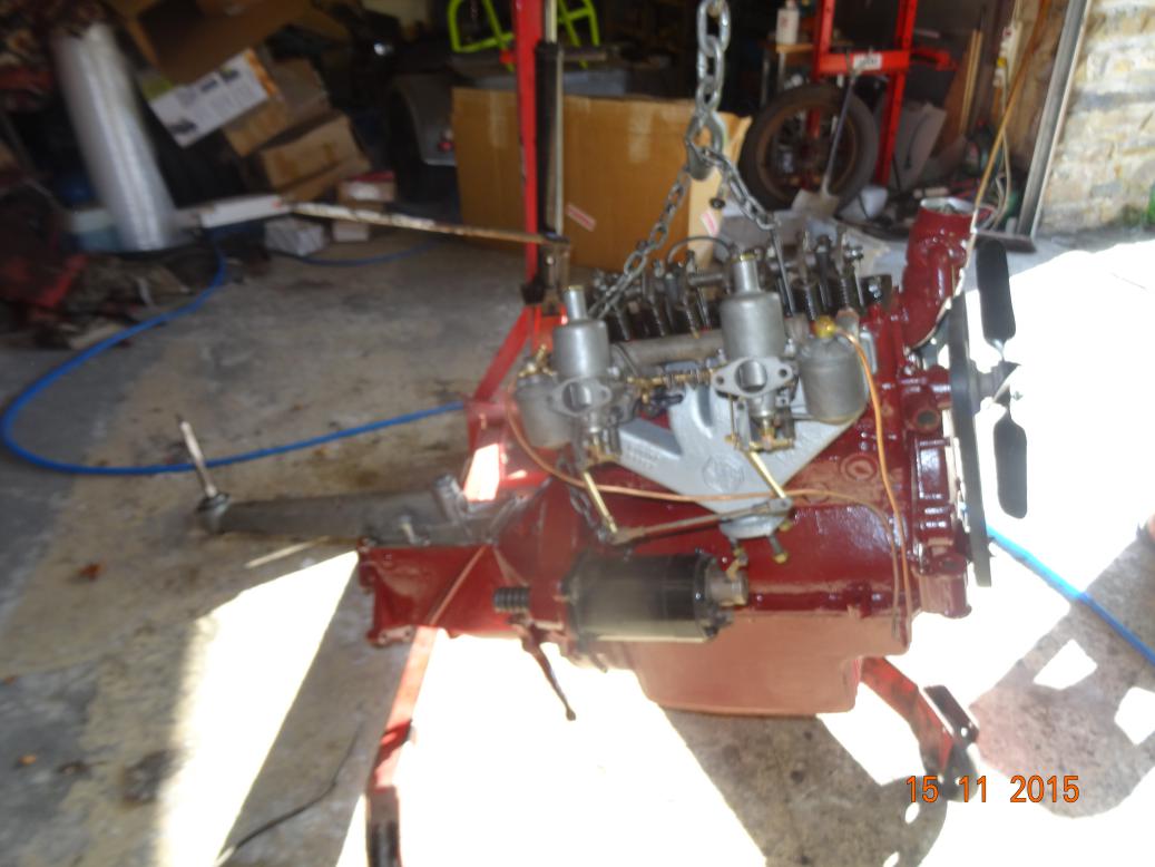 So, tonight the engine is almost complete and painted. I'll touch it up tomorrow, painting the bits I missed and then clean the overpainting off the bits that shouldn't have paint (rocker cover and brass unions). I have to clean the oil pipe union bolts then fit all the oil pipes. Then I'll fit the manifolds, carbs, starter and dynamo.