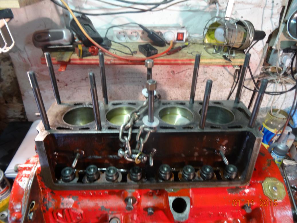 Head studs in waiting to be put on the floor to refit the head at a sensible height.