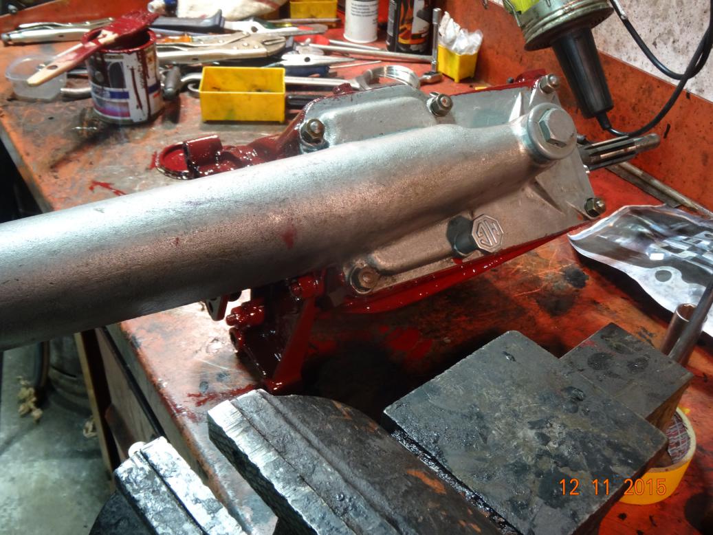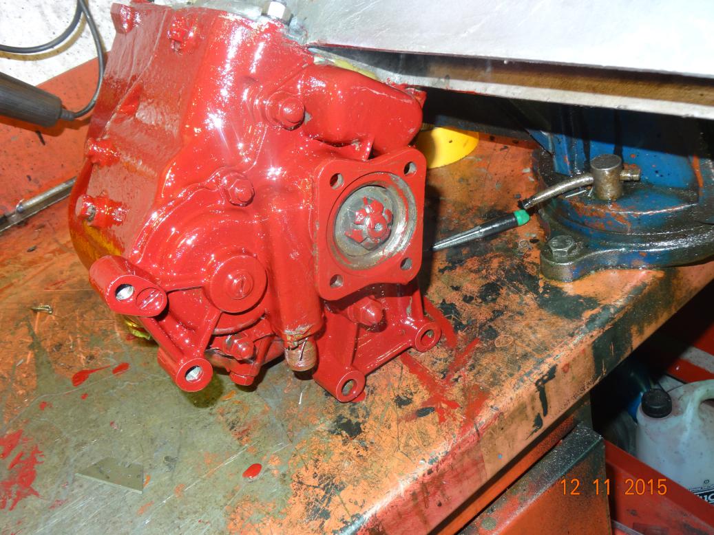 A cleaned and painted steering box. Looks like it may need another coat!