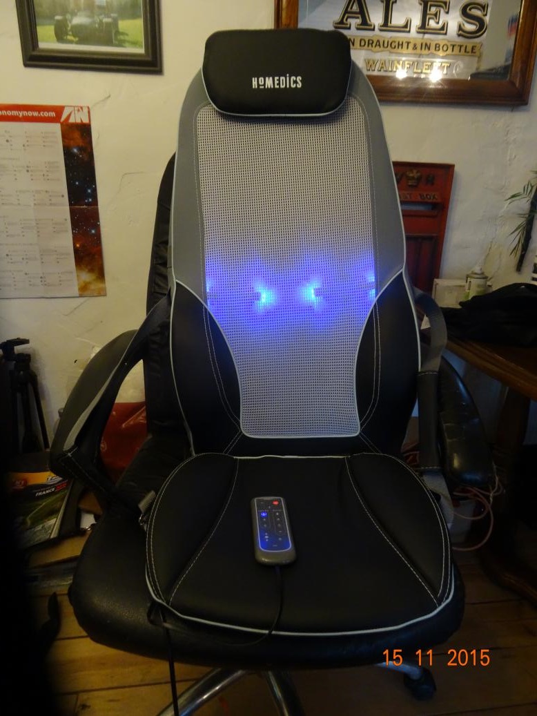 We then set off for Brico Marche to get a new paraffin heater for the porch (which was built after I put the heating in). When we got there they had a special offer of a Butane heater which was cheaper than the cheapest paraffin heater. So we bought one and then went to the petrol station for a bottle of Butane gas. This will be great if the gas lasts at least a month. The paraffin heater uses a 20 litre bottle of paraffin a week at nearly 30€ a bottle. The gas was 18.95€ (plus a Euro deposit for the bottle). Got it back, connected the bottle, fitted the wheels and tried to light it. The pilot light came on but it didn't light. Read the manual which says I may have to try several times the first time it's lit as there will be air in the system. Problem is that the safety device cut in and now the start buttone won't depress. Never mind, I'll try again tomorrow. The last thing we got a call from the local furniture store that my new armchair will be delivered next Wednesday and could I come in and pay the balance.