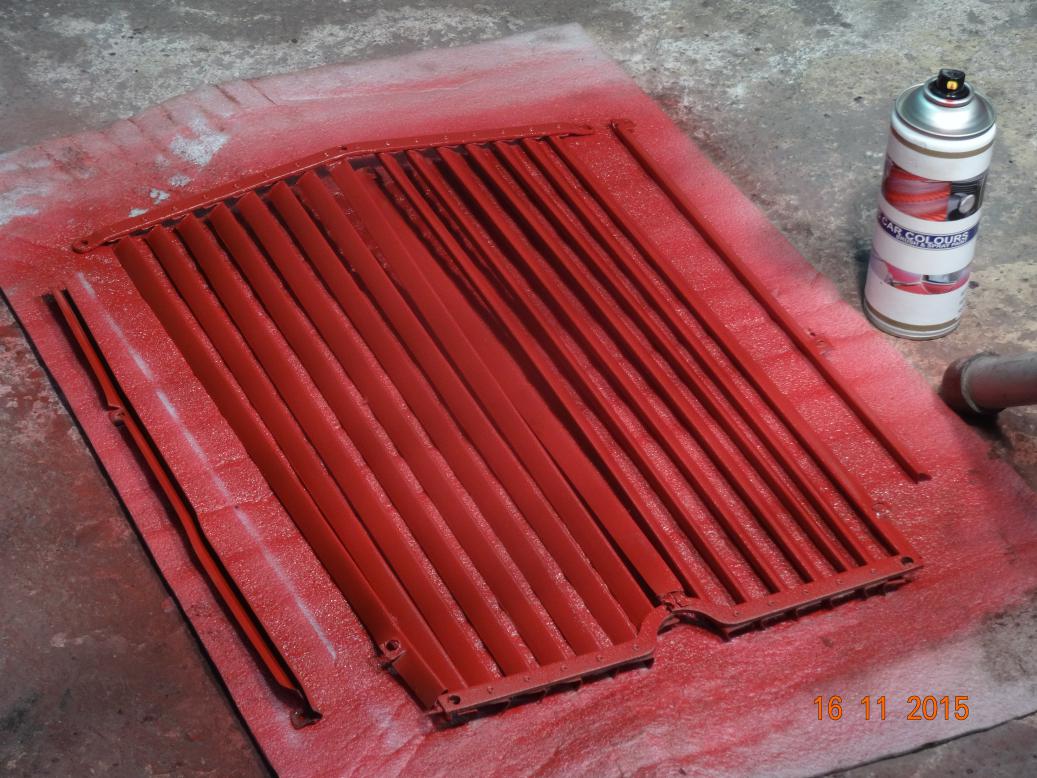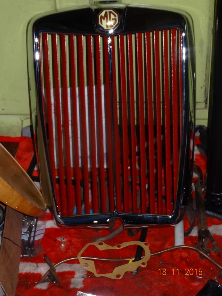 The newly painted grille refitted to the shell.