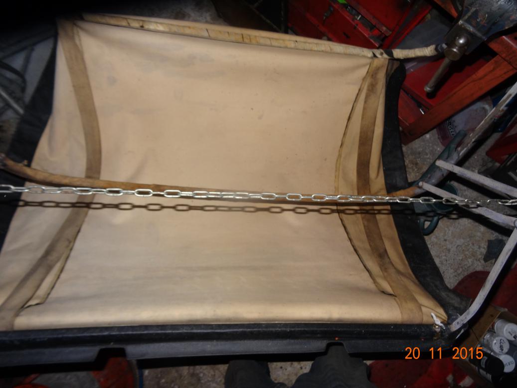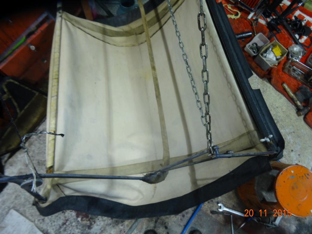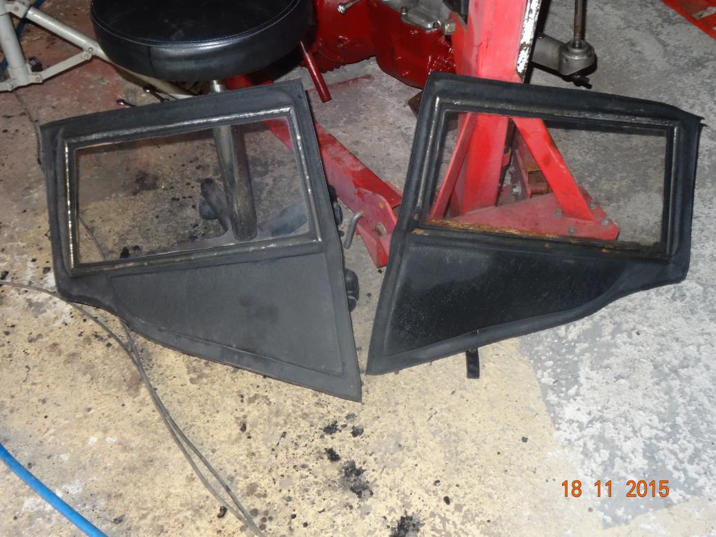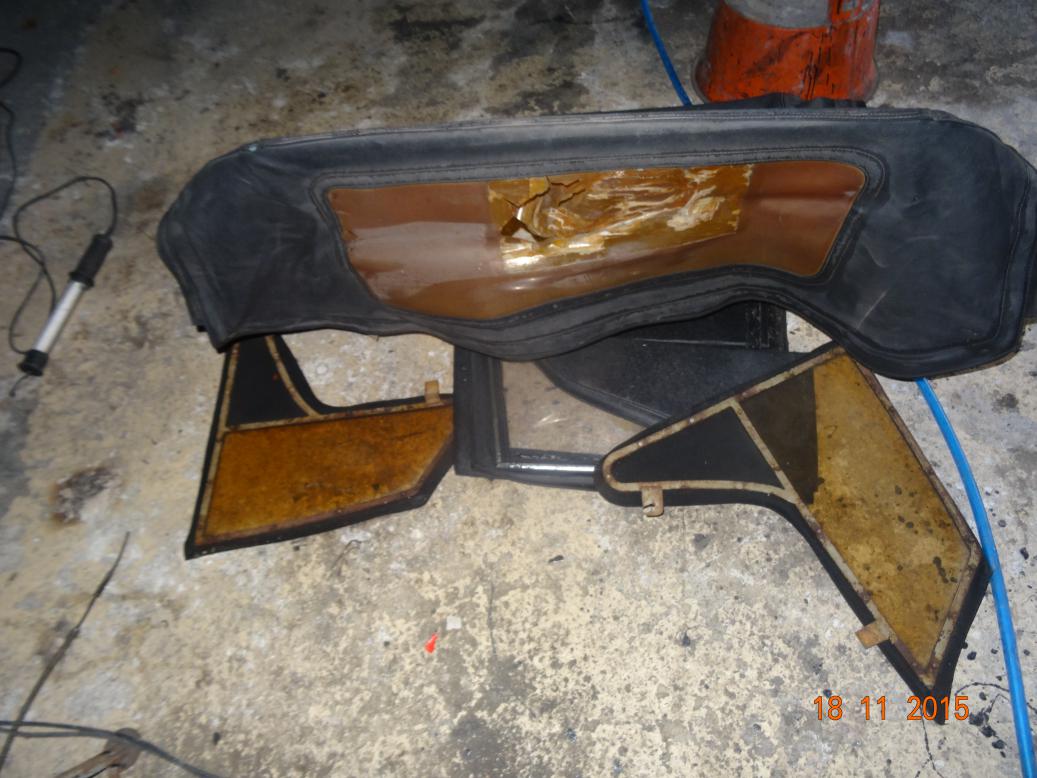 Was going to have a whole day off. However, by 1000 I was bored so brought the sidescreens and some tools into the house and started to remove the frames. Got most of the nuts off but a few were turning in the studs which are captive in the outside chrome strips. Got my Dremel but I've run out of cutting discs so that was as far as I could go. I got an email from John, the previous owner informing me that he had put a new hood and front sidescreens on during the 1960s. This explains why they are in vinyl and the rear side screens are original canvas. The rear are beyond repair, so I'll ask the chap puting the new windows in to make new, vinyl ones.