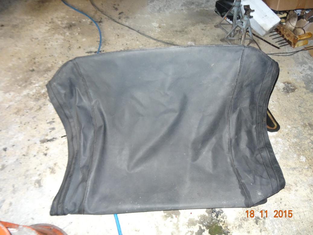 Ok, I know, you want pictures. Here they are. The material is surprisingly good but the hood needs a new window. The rear sidescreens are pink in colour but the fronts are still clear. I will get them all changed as even though the side are good, they are very brittle. I also refitted the grille to the shell. Looks Ok from a distance but not good close up.
