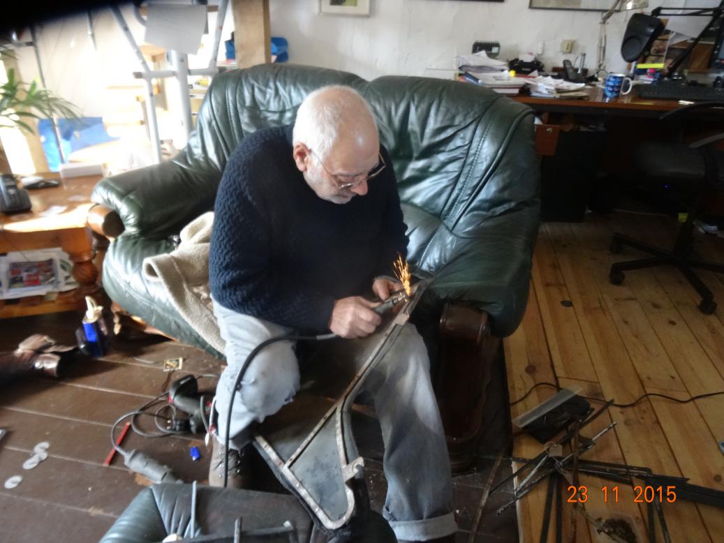 Me, cutting the nuts off the frame screws. Please note the new very short haircut, I've not gone bald, only been shorn.