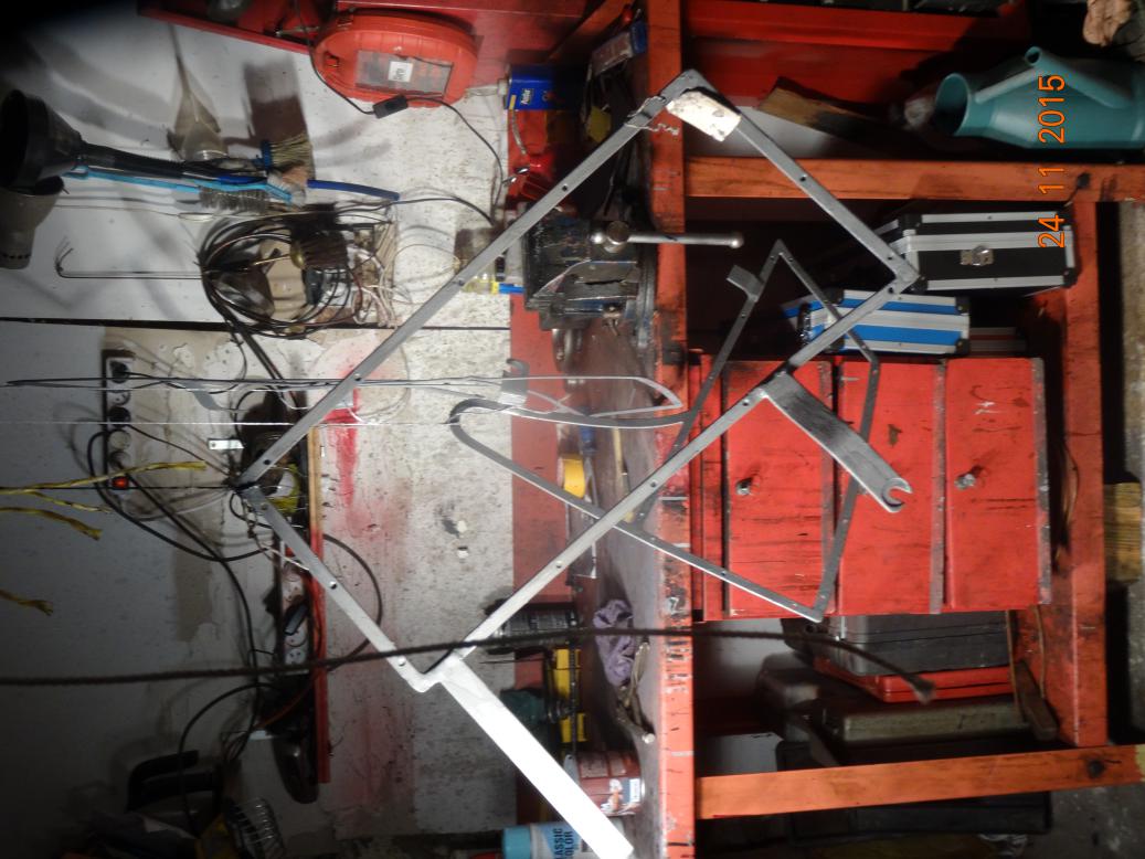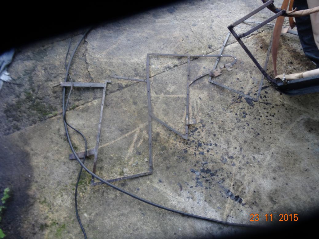The broken frame, about to be welded and have the missing piece put back.