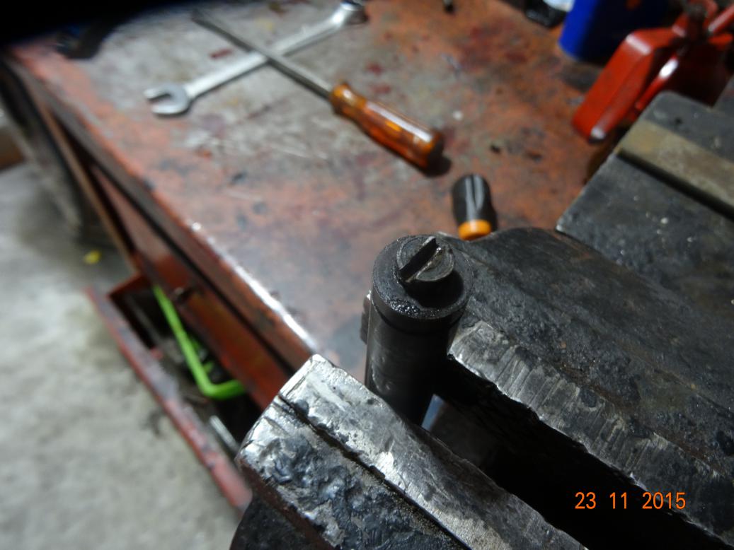 The top of the column, resting on the old oxy-acetylene cylinders. The other end is on the vice.