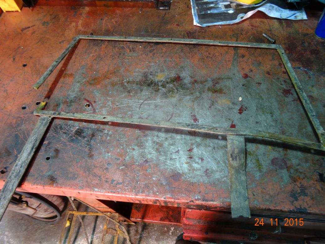 I then rubbed down the frames and welded the one that had fracured and then made a piece for the broken bracket and welded that on. Having done that I then pianted all four frames with rust killing primer (the one that I keep under my arm!). Lunch. I'm not sure why I'm spending so much time on the hood and sidescreens, they'll probably never get used. But, having taken all the time and trouble I've taken so far, may as well do the whole job. Which reminds me, I wonder how much labour I've spent so far. Hang on and I'll do some working out.............