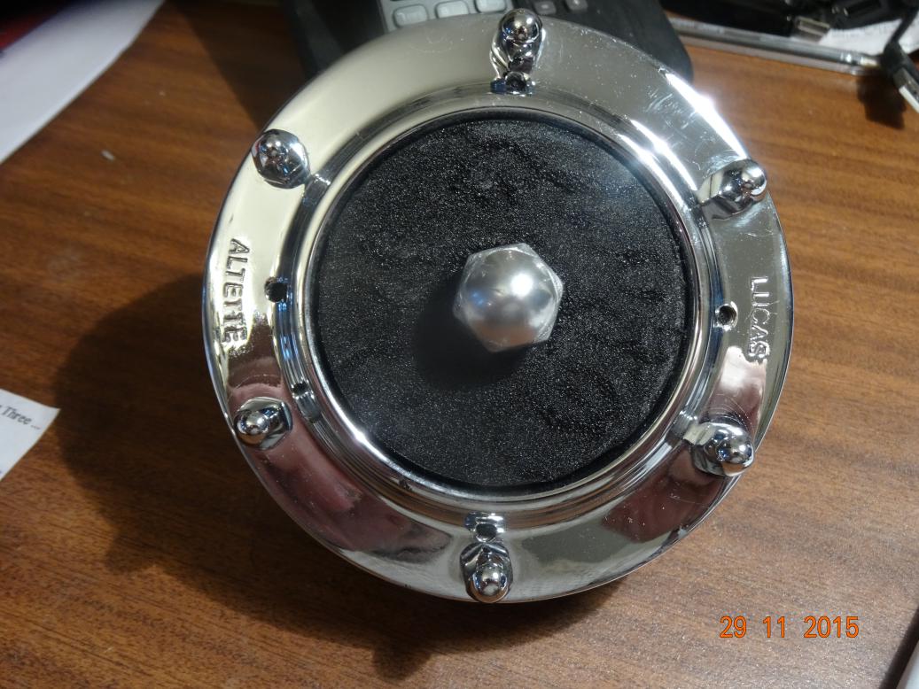 No work today, a nice day off. However I did bring the wiper motor and horn into the house. The wiper motor will need stripping a painting again but the horn is just about acceptable. Although I'm not sure the centre nut should be crackle black.