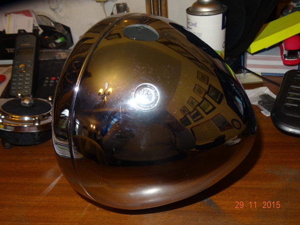 I then went out to pay the balance of my new armchair which is being delivered Wednesday. I also got a bread from the supermarket. I also bougt a new Stanley knife and some blades. I have noticed that the Alette horn is wrong. The centre nut is black and should be chrome. So I'm going to mask it up and paint the centre nut with chrome affect paint.