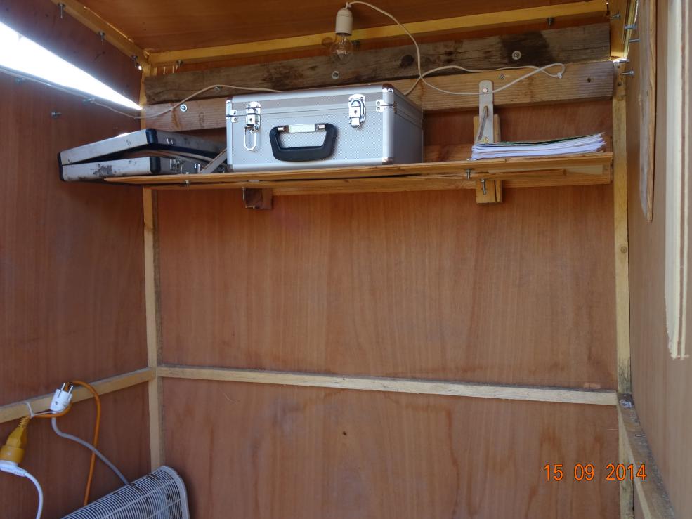 Monday evening 15/09/14. Another tiring day spent putting the shelf in,