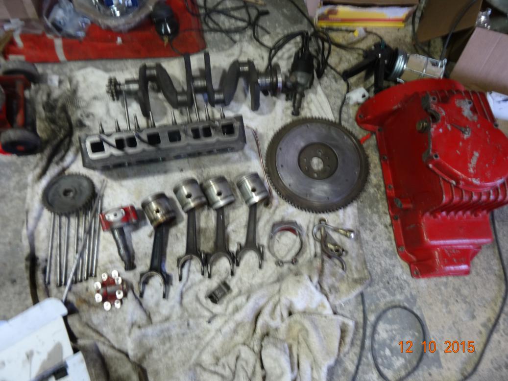 The engine stripped ready for overhaul. Le moteur dépouillé prêt pour la révision.
