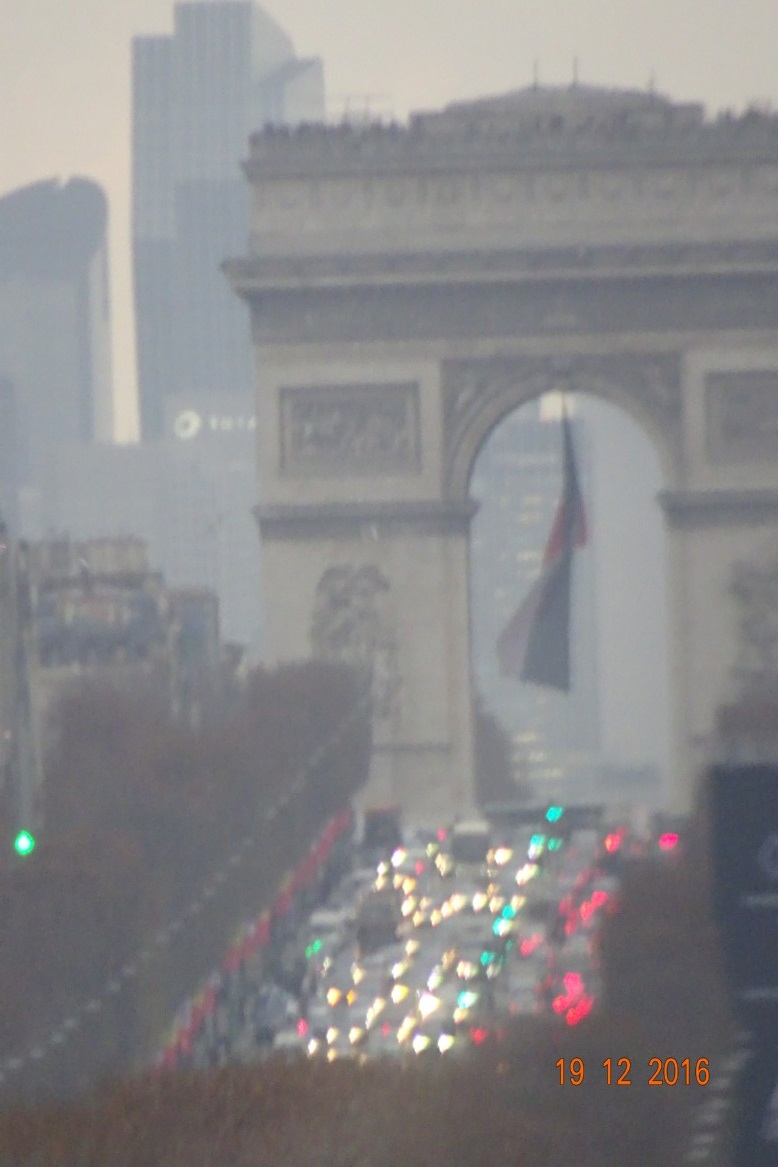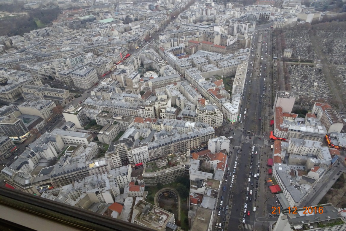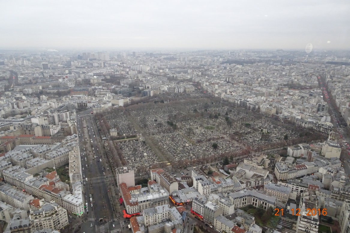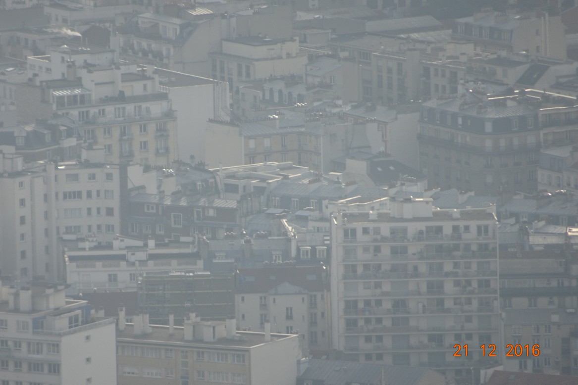 Montparnasse is in the south of the city. The pollution haze seems less here.