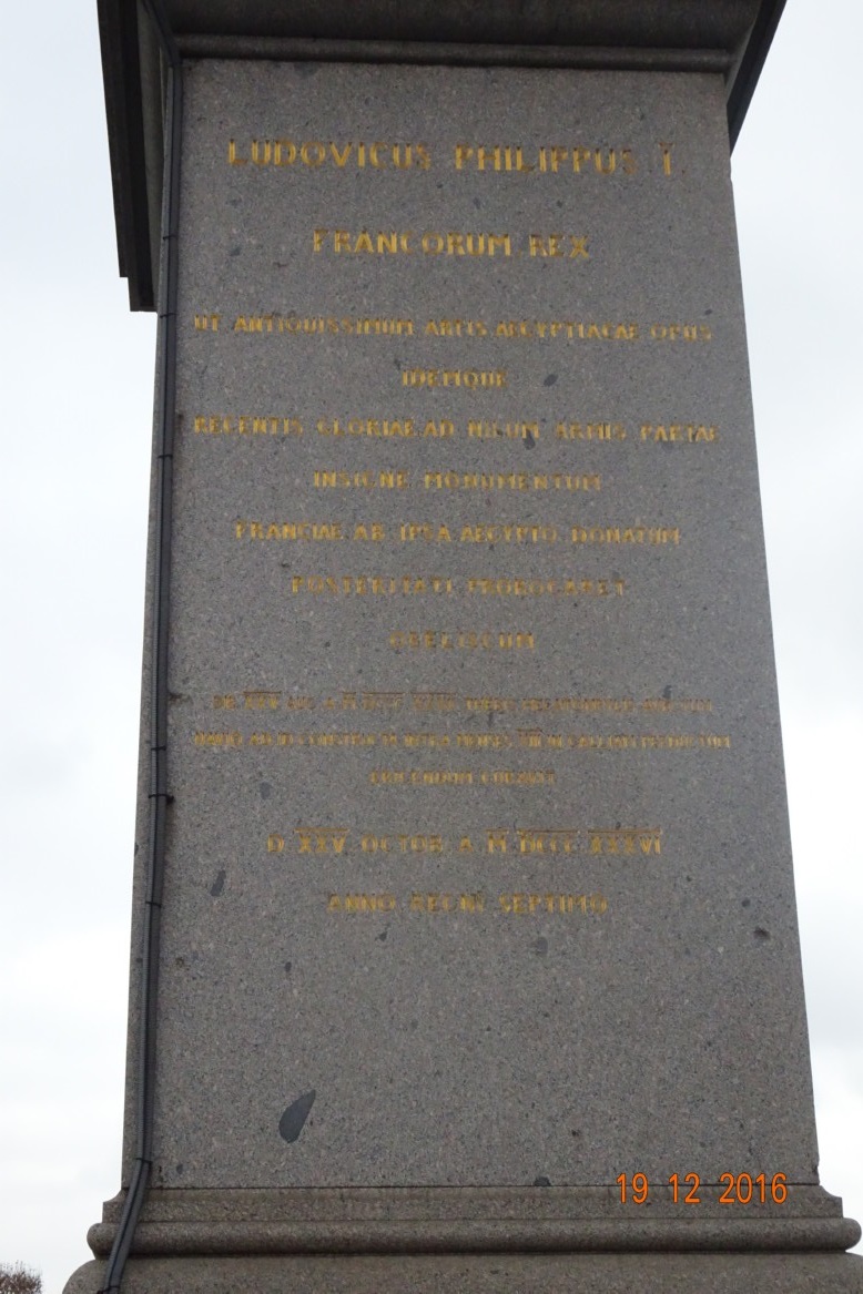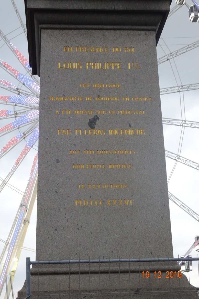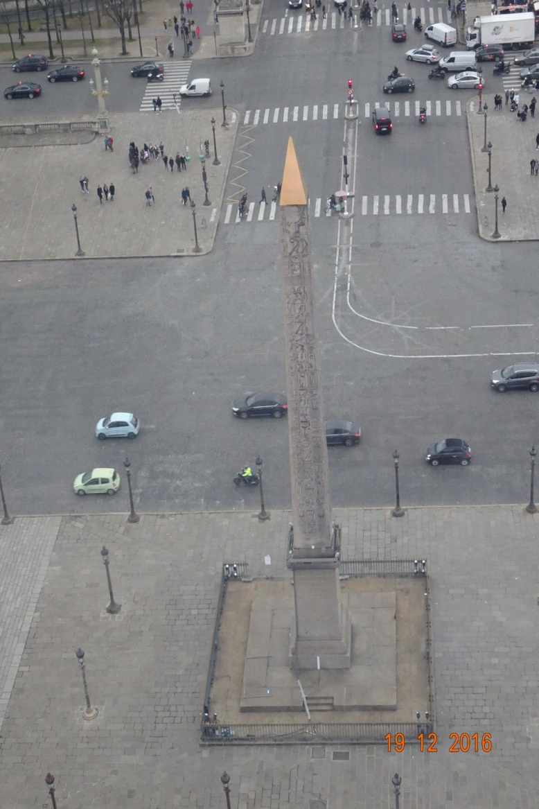 Place Concorde. It's at the other end of the Champs Elysee with the Arc de TRiumph and the Etoile at the other end.