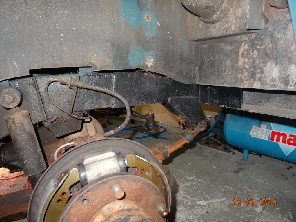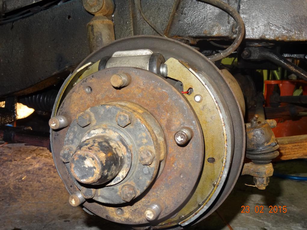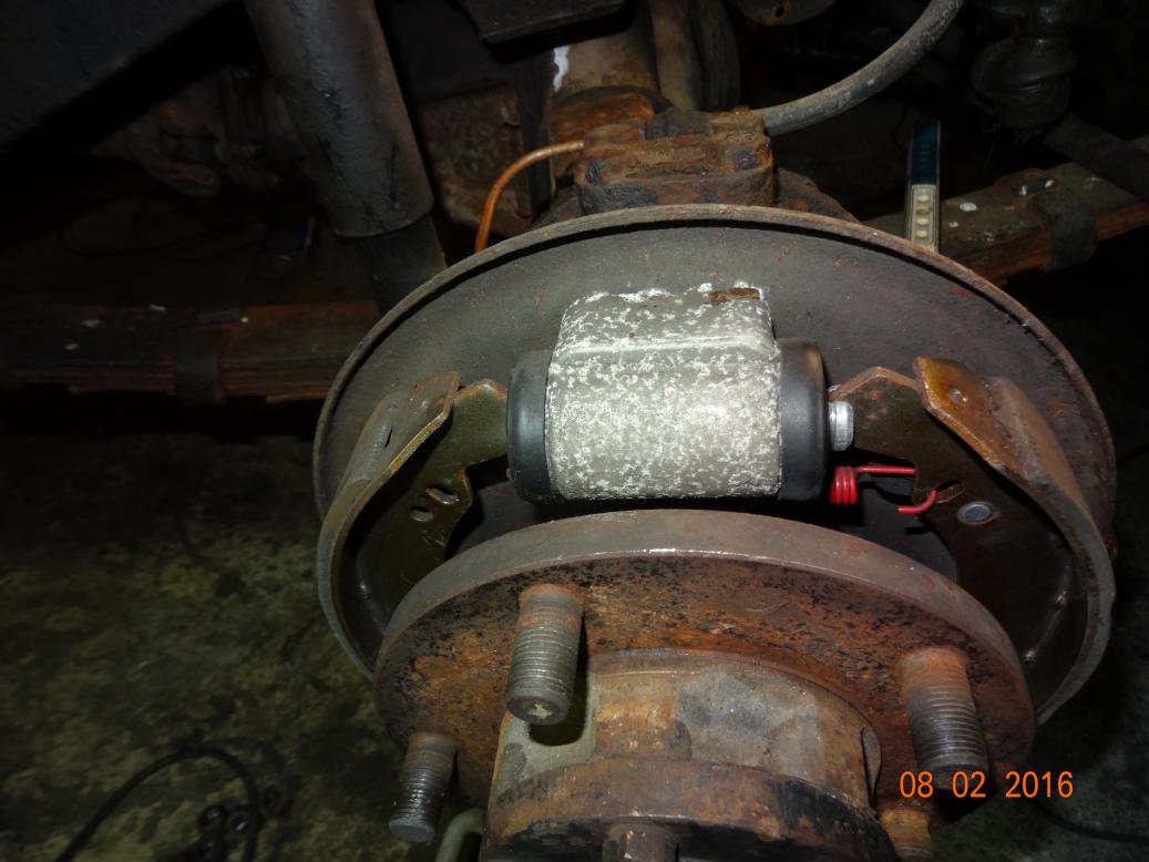 On Sunday 22nd January 2015 I looked at the brakes again and didn't find much wrong. When I went to try it the pedal went to the floor and the car slewed violently to the left when braking. I suspected the o/s/f wheel cylinder was leaking. I gave up and came in.