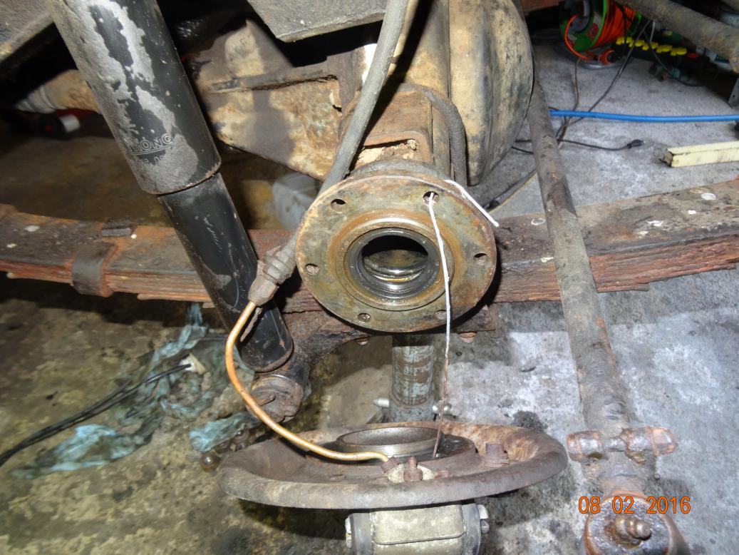So, a year and 4 days after collecting it (it is 8th February 2016), I finally get round to fixing the steering. It's been a nightmare to drive as the front hubs are seized. I freed off the near side hub with Plus Gas and am fitting a new hub kit to the off side. I'm also fitting a new petrol tank as a seam has rusted away and it's leaking. I found out have filled it with 80€ of fuel, I'm still crying about losing it all.