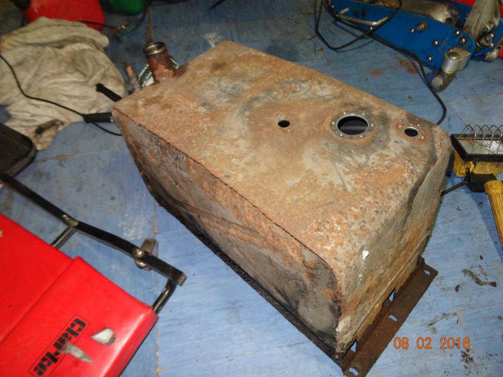 Fuel tank with fittings removed.