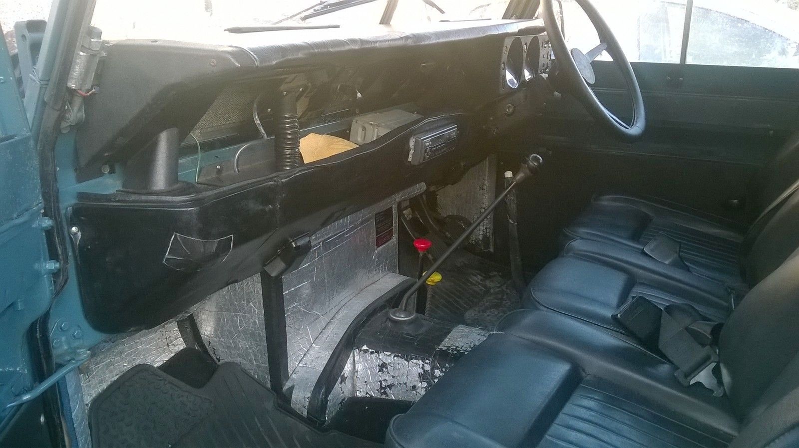 Interior. The radio panel will be covered in black vinyl and the top edges cut away to make it fit. Previous owner has laid all the silver backed soundproofing so I've ordered a set of carpets to fit. I'll also glue a white headlining on as the roof is strips of sorbo rubber sound proofing.
