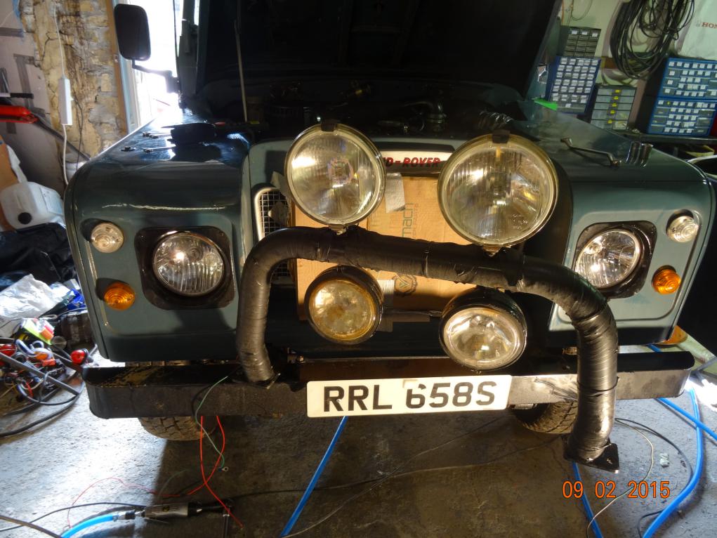 Lunch and then I fixed the loose headlight, checked the lights (one sidelight not working and it's not the bulb) and the brake lights aren't working. I'll fix them over the next few days. I've still got to wire up the spotlights, wire is there just need to run them into the dash and fit a switch. I also need to fit a warning light to the reverse light switch. Reverse lights? They're bloody great big spotlights!