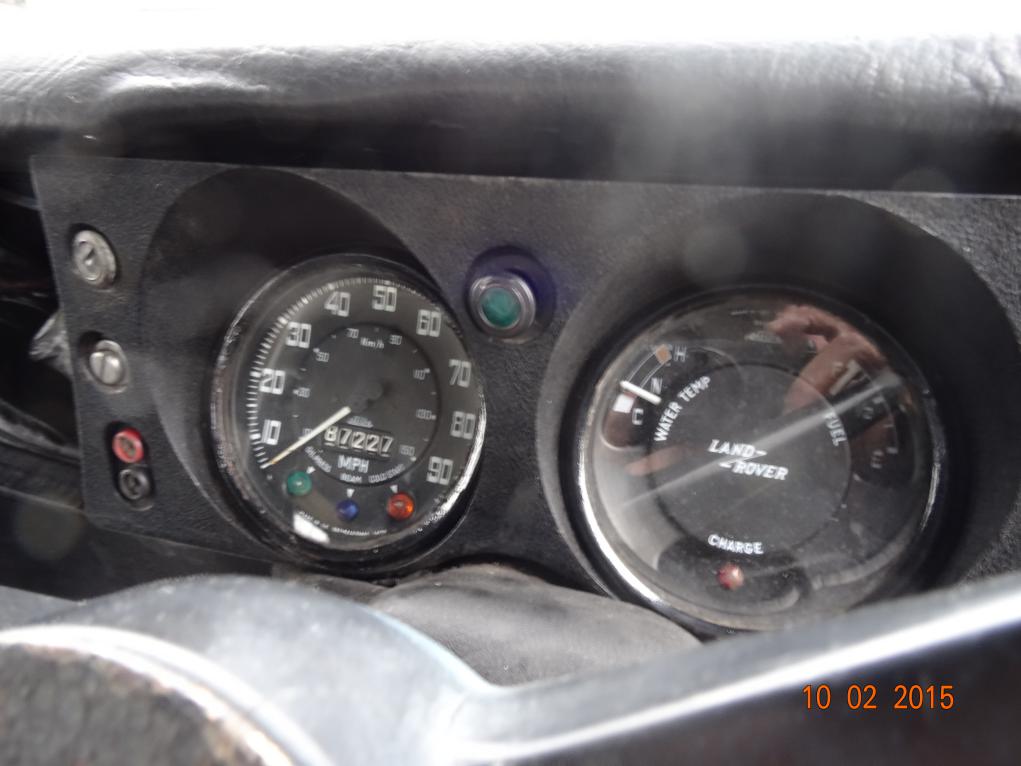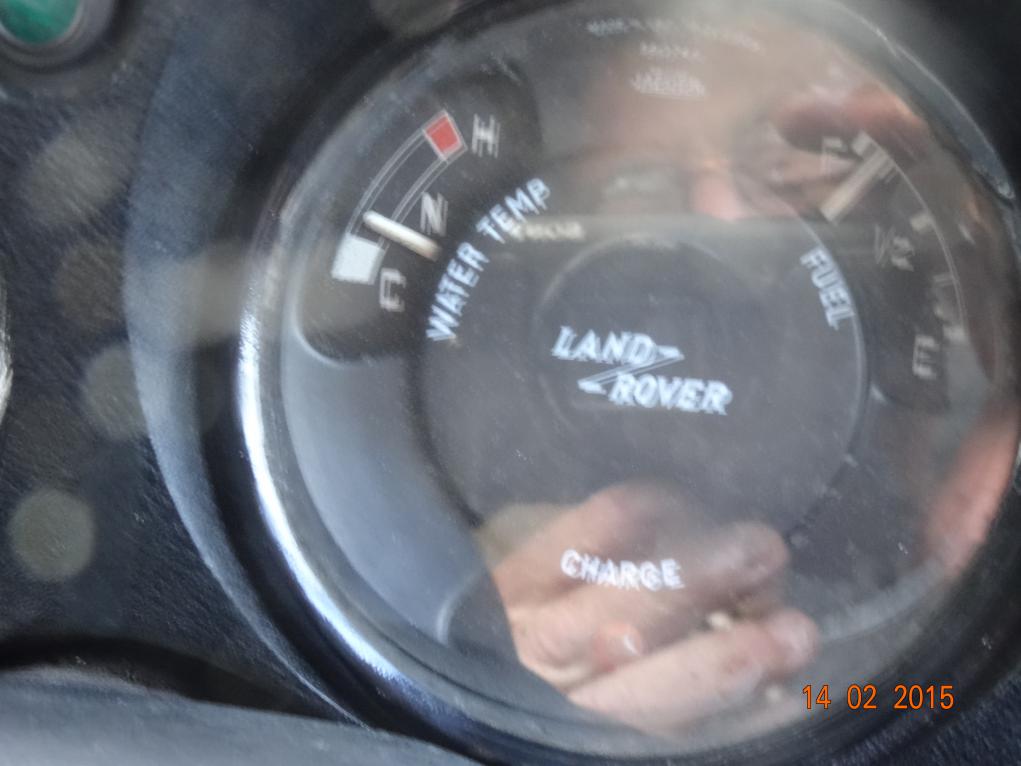 Fuel gauge at FULL and I think the temperature gauge is also working. By the way, the speedo is correct but you must add another 30,000 from the first speedo (which is in box of bits). So, 117,000 miles for a Land Rover, just run in! (and we added 1,000 miles getting it from Rosyth to here. Actually it's only 640 miles, seemed a lot longer)