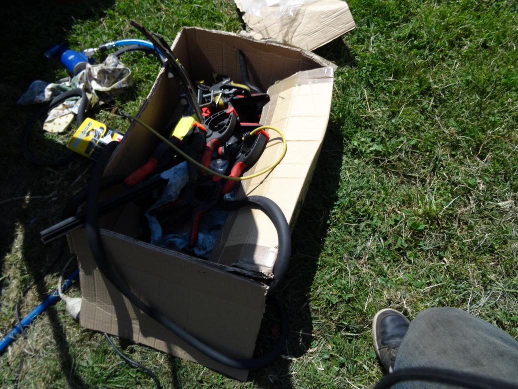 Amazing how many tools are needed to change a door seal. The original seals had a metal strip running inside the seal and were riveted on. The new ones are glued on.