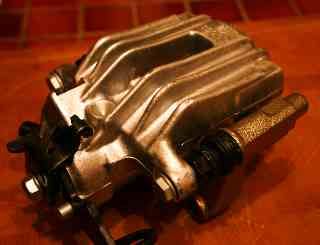 In Autumn of 2004 I decided it was time to do something about the heavy and inefficient rear brake calipers. The cast iron, single piston caliper was originally fitted to Ford Sierra's. The problem I came up against was finding a twin piston, lightweight caliper with a handbrake. This proved impossible, though, I must admit, I didn't look too hard.