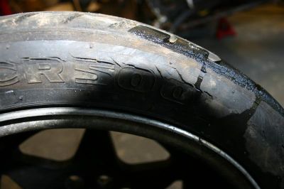 tyre would be OK until I looked at the inside. The wing stay had been crushed