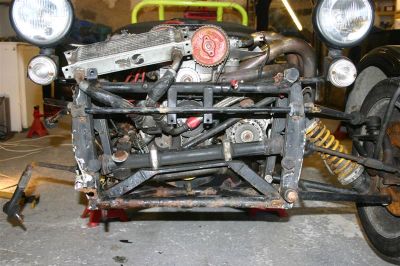 dismantling. First thing off is the radiator. Then remove the damaged o/s/f