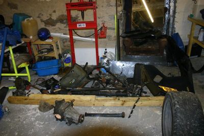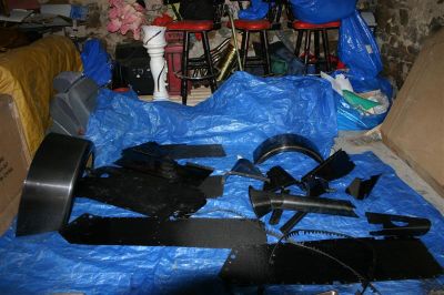 frame, 2 radius arms and 4 manifold pipes) in a shopping trolley and in his