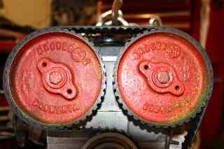 These photos were taken earlier, the pulleys are now gold and rust free!