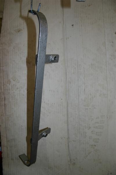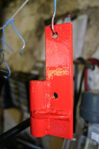 A seat bracket. Hanging up to dry having been brazed and bent then painted.