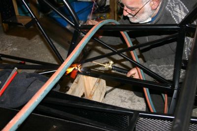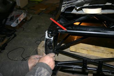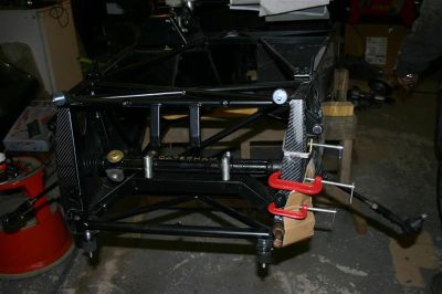 I tightening the front suspension and fitting the front brake pipes through
