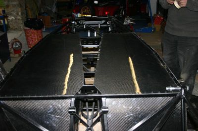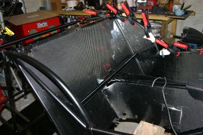 I cut a carbon panel from the old rear panel to fit on the tunnel top under