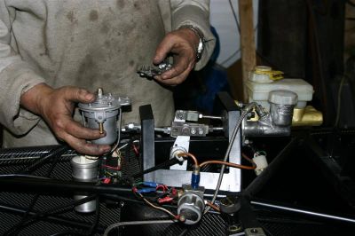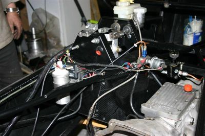 Thursday 29th March: Today sees the engine bits and pieces all refitted and the steering column fitted and after much head scratching the fuel filter position decided on and fitted. Then to the battery.