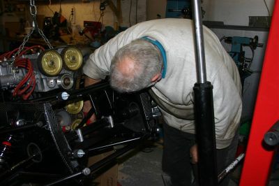 Fitting the engine mounting.