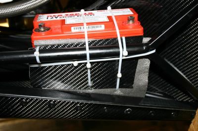 The battery with carbon tray and foam underlay. The panel with the row of