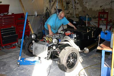 in the middle of getting the engine in I'm letting the back of the car down and