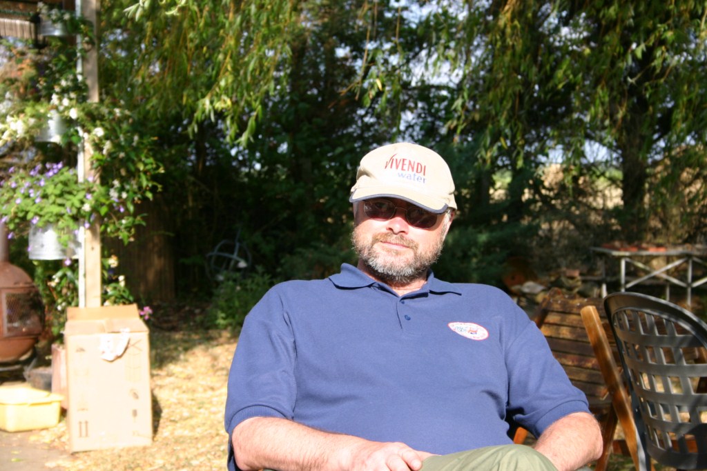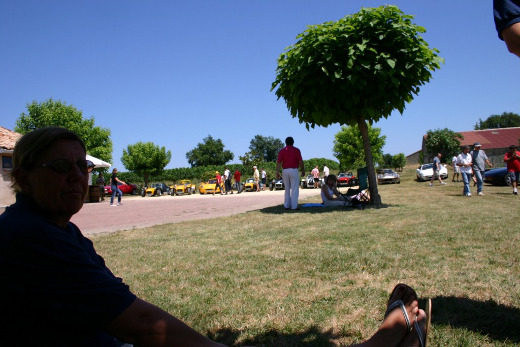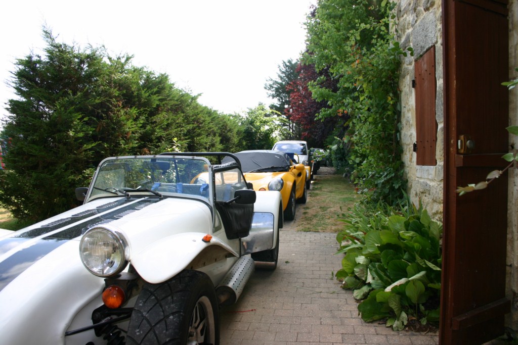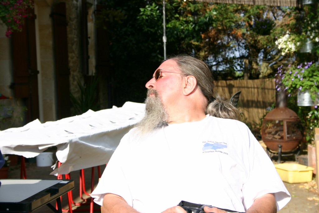 Bernie. Now, I've a tale to tell about him. two tales actually. We lived in a very small village in the Peak District between Sheffield & Manchester. New neighbours moved in next door and he knocked on my door asking if I knew how a friend of his in France could get the noise of his Seven's silencer down as he couldn't pass a French MOT. Turned out to be this chap who was at Hugh's when we got there. Next story. All the way there our intrepid frog, Michele (see above) was whittling on about Helga, Bernie's partner. Something about wanting his body and he's going if she's there this year. When we got there I asked Bernie if Helga was with him this year. "No, we've got a few changeovers, so she couldn't come". Turned out they ran gites for naturists, so Michele may have been right right about her wanting his body!
