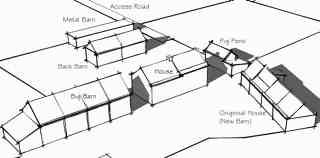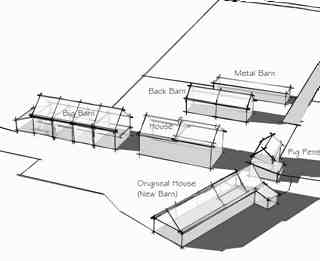 The Small Barn, Pig Pen, rear of Our House. edge of Long Barn