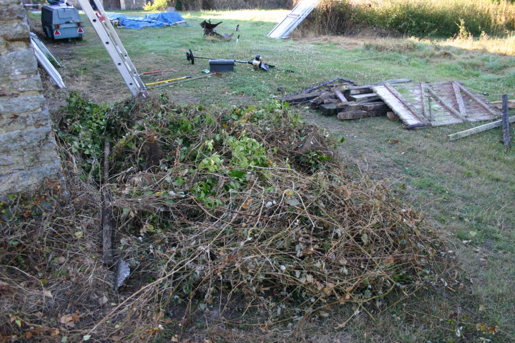 Walls cleared, and as you can see by the angle of the shadows it's 17:13 (You should know by now that I'm a smart-arse). Tomorrow I'll do the ivy that's too high to reach without the ladders and then onto the floors.