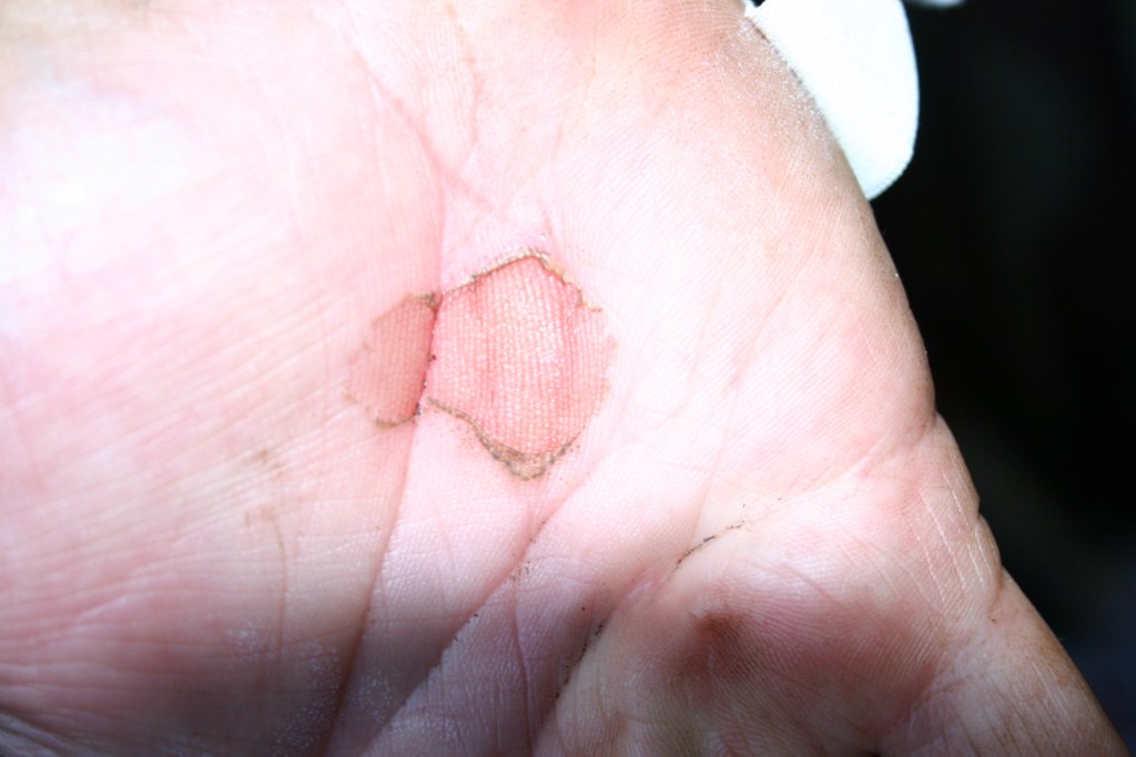 Whilst digging out the edges this morning, I was using an old wood chisel. This is what an old wood chisel will do to your hand if you don't wear gloves.