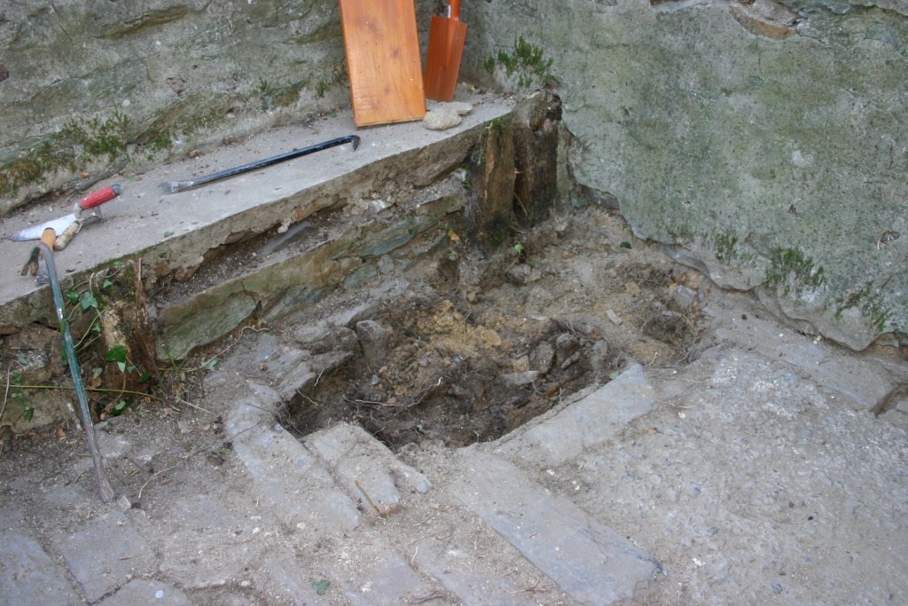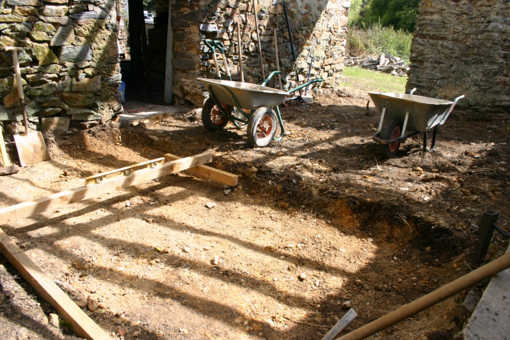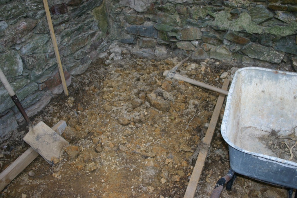 Nice early start. Visitors left at 10:00 and Lynne jumped in to start cleaning, whilst I made out the shopping lists. By 12:45 I could hardly stand but only had a small section left to dig out. This after removing 2 barrow load of earth from the corner of the floor (the rest had been removed before I started digging out the stone floor). So lunch calls as Lynne gets back from the Super market.