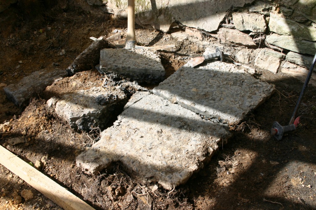 In a moment of rest (some rest) I smashed the concrete top off the plinth. I wanted to make sure the wall wasn't built on the plinth, it isn't.