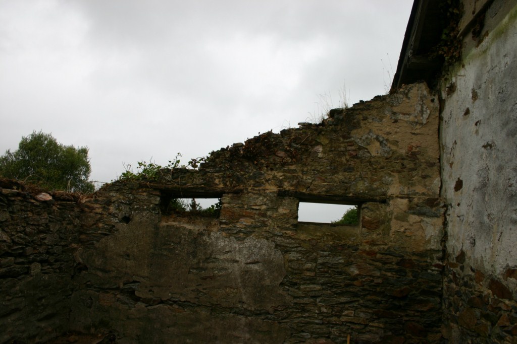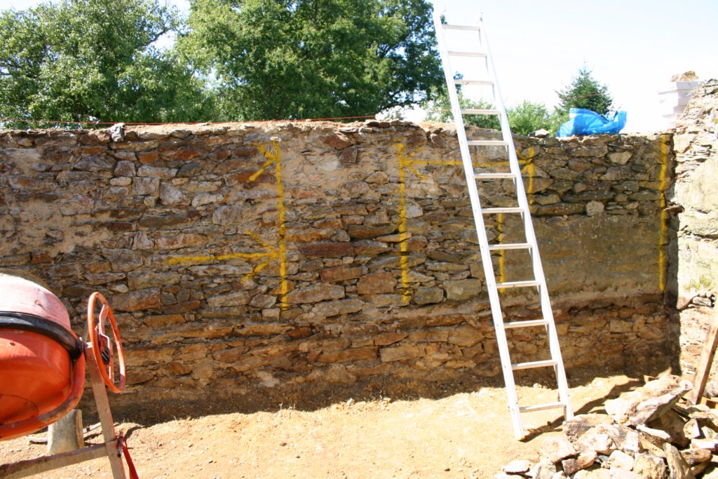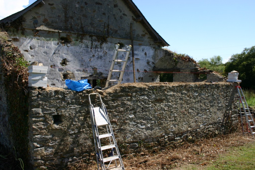 Got up late and just couldn't get going. Lynne went out to see the insurance company about our roof. The local roofing company have given us a quote to build the new roof on the kitchen and insulate the barn roof for the sum of 38,000? but still haven't quoted for the repair/renewal of the roof which was blown apart during the gales before Easter. Looks like we'll have to start all over again with another roofer. So 5 months and 2 companies and still no quote. Back to my antics. Built a bit of the wall up but found I was going up and down the ladder with stone and buckets of gobbo more than I was building a wall. Went back to the house and was checking on emails when.....