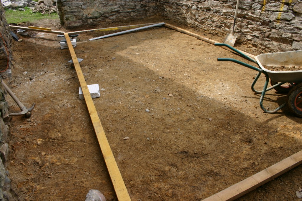 Whilst I was a happy gobbo-er, Lynne raked the floor ready for me to finish digging it out level tomorrow.