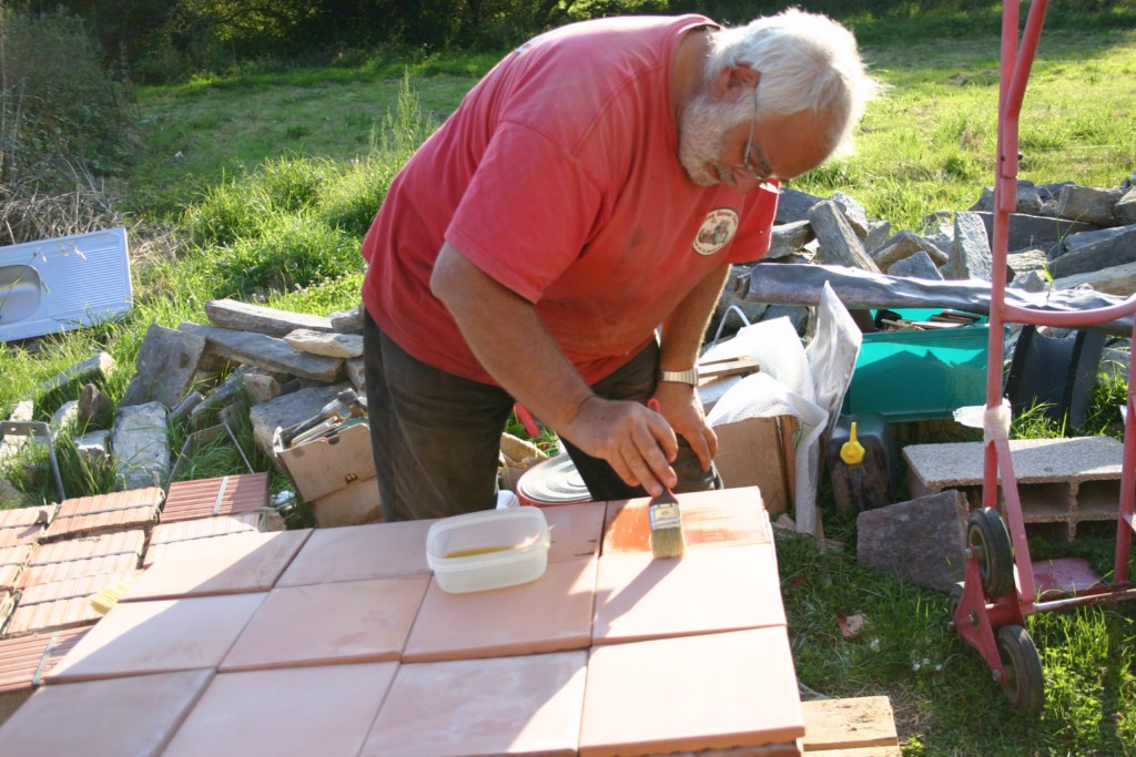 Sun is shining and I decide it'll be nice to spend the day outside treating the terracotta tiles to a good coat of Linseed oil. In the afternoon Tom phones and I agree to pop round to his house in the morning to dig out the space for his new patio.