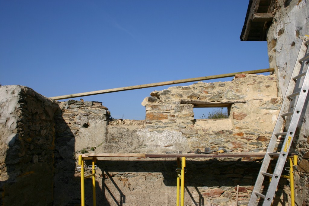 From the other side, note the rubble on the ground and the slate stacked up against the wall. Hope we have enough slate, it's for the breakfast room floor. I have plenty of hand made clay tiles to make up any shortfall.