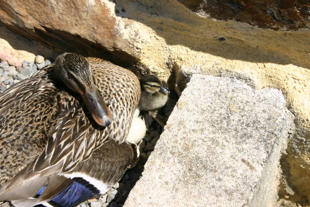 This is the other nest. Duck with duckling just peeping out.