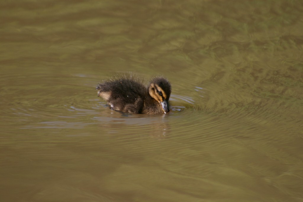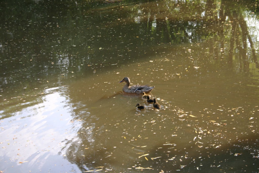 Mum No. 2 with her 4 ducklings. 3 follow her diligently but the fourth just goes off wherever he/she wants.